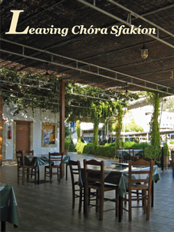 As its name (‘Sfakiá’s town’) indicates, Chóra Sfakíon, though not much bigger than a village, is the capital and the largest town of the Sfakiá district, which has a reputation for the kind of cultural conservatism that manifests itself in stubborn independence and blood feuds. It certainly does seem that no revolution has ever occurred in Crete that Sfákians didn’t join, if they didn’t start it themselves, and perhaps such independent-minded folk need nothing bigger than Chóra Sfakíon in the way of a metropolis. Since the town lacks space to grow any larger than it is, the question is moot. Today, it’s a peaceful seaside village with some nice hotels and restaurants, and we were looking forward to a few days’ change of pace.